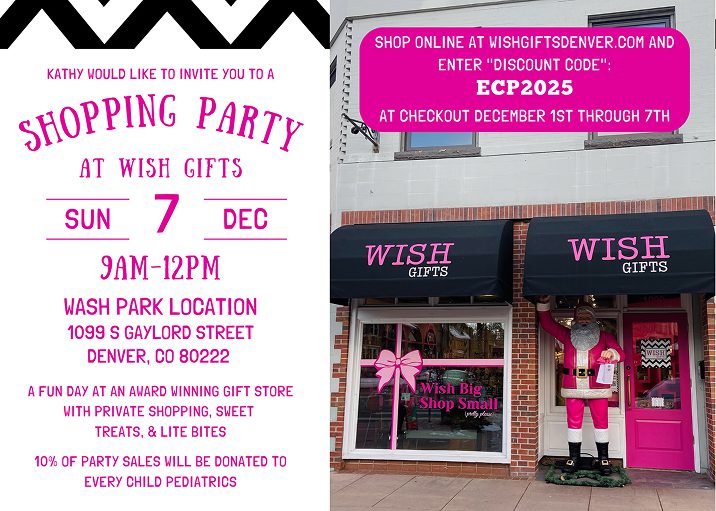 Kickstart your holiday shopping by joining us at one of Denver’s best gift shops! A portion of all sales will be donated back to ECP. It will be a morning of shopping, sippin’ bubbles, and giving back to ECP!